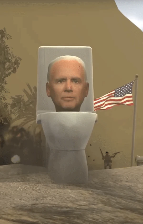 Байден Туалет представляет из себя аналог Большого Скибиди Туалета, но с головой Джо Байдена.