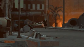 Далее Туалет пытается атаковать группу Агентов, но те выстреливают в него из парализующих винтовок. Скибидиста заносит, он врезается в машину и взрывается.