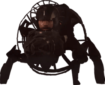 - Складывание ног. Импактор Астро Туалет способен становиться по визуалу шарообразной конструкцией, складывая механические ноги снизу конструкции своего унитаза в случае их ненадобности.