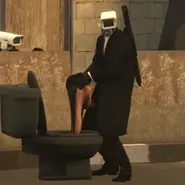 Был надвое распилен Летающей Пилой Скибиди Туалетом, что летал по улицам горящего города, поэтому в полумёртвом состоянии без ног и с искрящимся телом лежал на дороге. Показал POV-Камерамену (он же Симп Камерамен) большой палец вниз и, не имея больше сил, слабо опустил голову в пол.