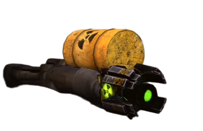 Радиоактивная Пушка представляет из себя металлическую конечность Скибиди-Мафии 2.0 на которую прикреплена эмблема радиации зелёного цвета. на конце пушки установлено дуло по бокам которого установлены прямоугольные, загнутые на концах пластинки. Также к пушке прикреплена Бочка с Кислотой (благодаря которой при зарядке дуло светится зелёным).