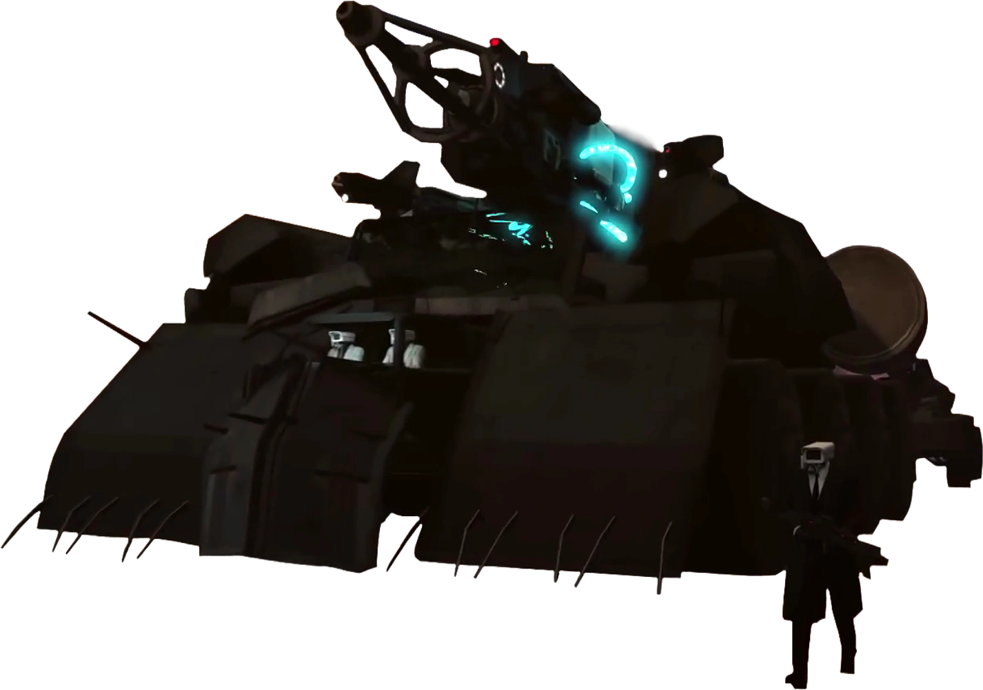 - Лазерная обеззараживающая турель х1. Главное оружие и оборудование танка, используемое для освобождения членов Альянса от паразитов. Было предназначено для освобождения заражённого Титана Спикермена.