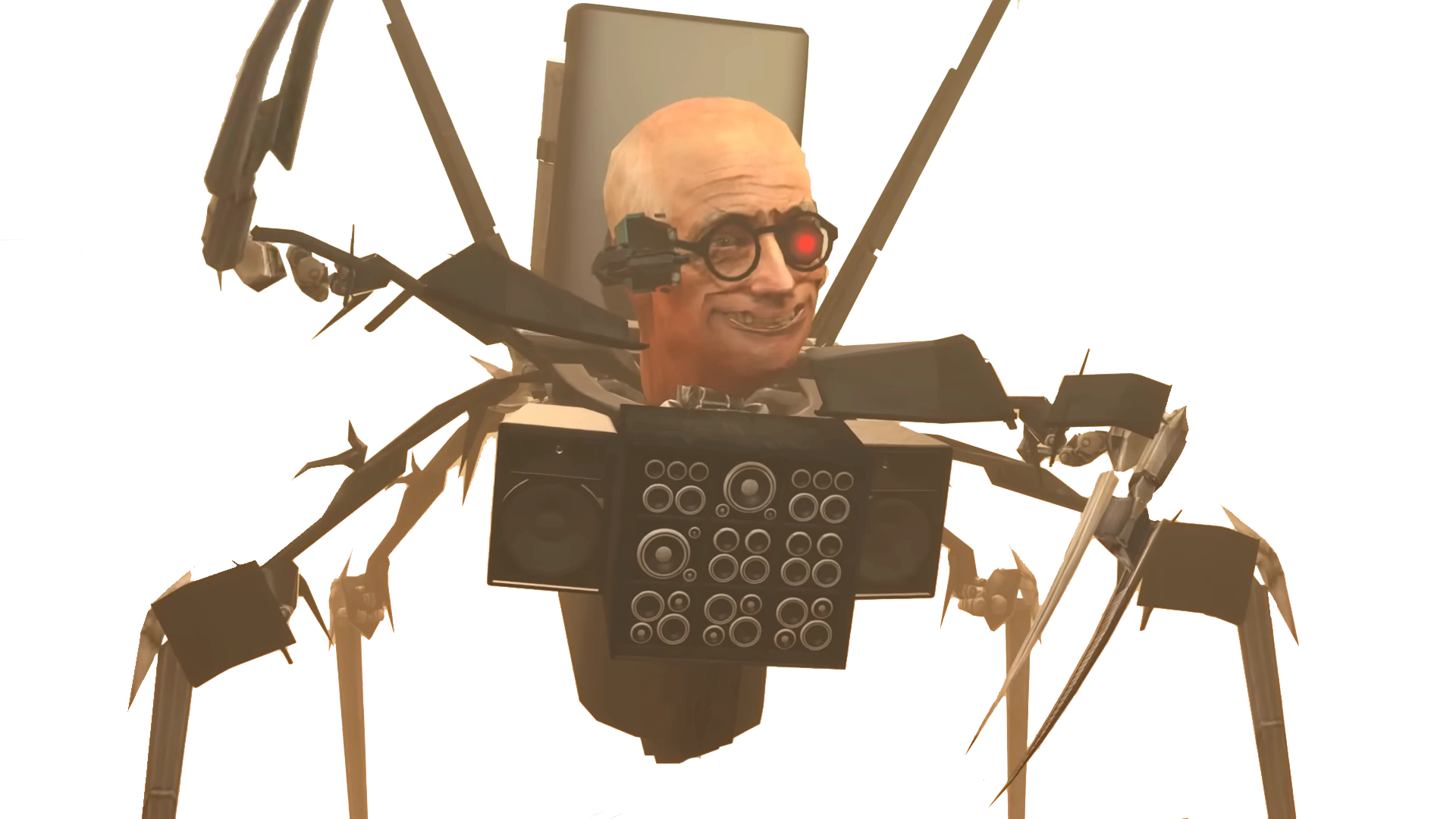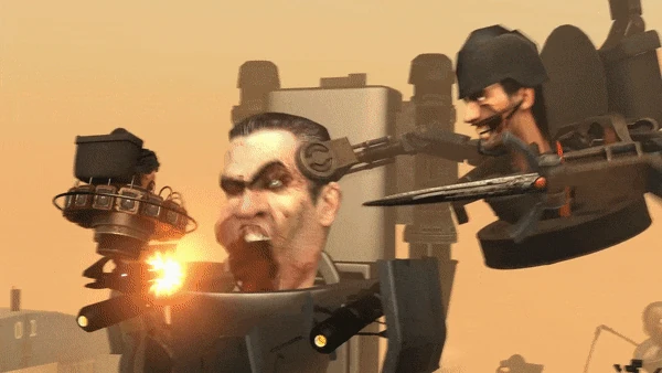 Титаны совместными усилиями победили Мафиози, реактивного шестиракетного и двухпильного сварщика Скибиди Туалетов, после чего собрались перед лабораторией. Заметив телепортационный дым, напарники отвлекаются на него. Поняв, что намечается неладное, POV-Оператор взлетает на крышу здания сзади. Из объекта выходит хитро улыбающийся робот, который ставит два верхних когтя вперёд, показывая, что готов к битве.