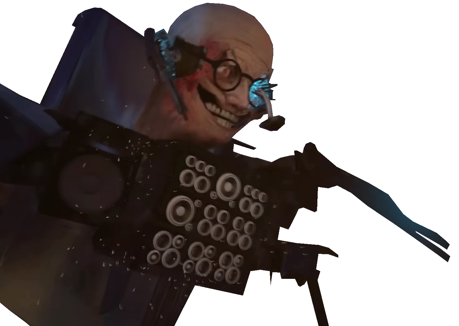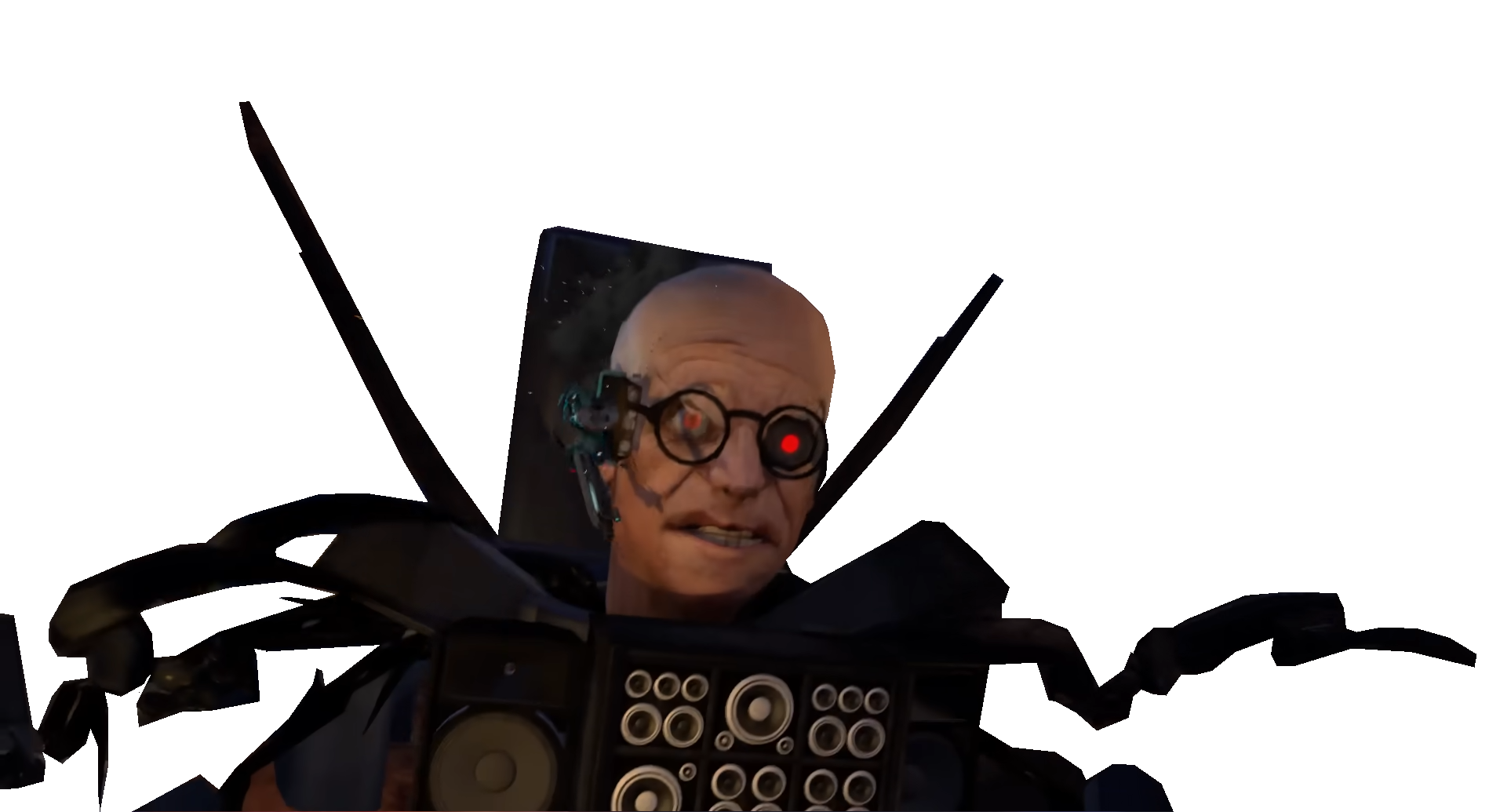 - Язык-клешня х1. Клешня, выдвигающаяся изо рта, была предназначена только для снятия защитной линзы с головной камеры Титана Камерамена. Возможно, способно заражать, ведь похожа на язык Скибиди Паразитов.