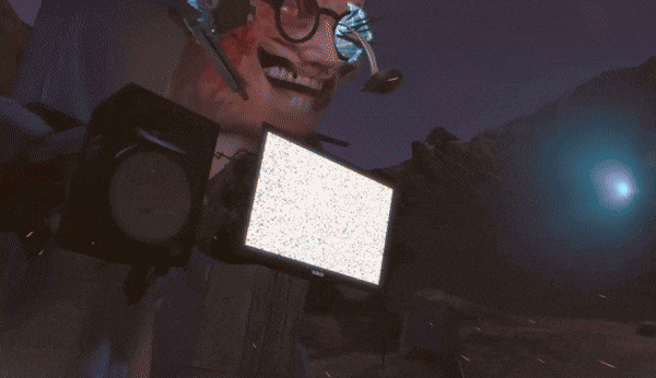 Робот меняет свечение телевизора с красного на фиолетовый, который заставит Титана Камерамена встать на вражескую сторону.