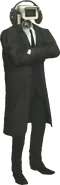 Обычный Камерамен одет в чёрные туфли, перчатки, брюки, длинное пальто (иногда куртка или пиджак), длинный деловой галстук и белую рубашку (встречаются и другие цвета).