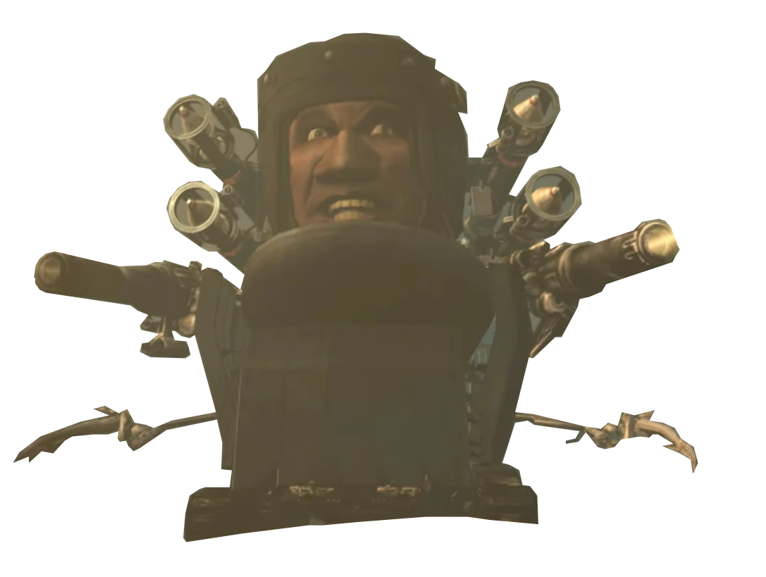 - Своей конструкцией очень похож на Гигантского Скибиди-Ракетчика.