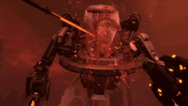 Пильщик Мутант Скибиди Туалет нанёс Паладину Астро Туалету первичный урон, вонзив кибер-клинок в его голову, отрубив несколько астроплазменных пушки и выпустив в него лазерный луч из гравитационной пушки, что привело к значительному повреждению. | |