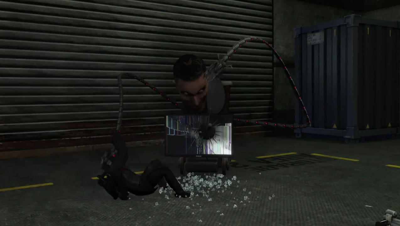 Придавил его к земле щупальцами к земле слегка сломав ему стекло в динамике | Ранен |