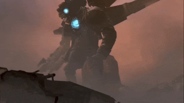 - Двойные пушки, покоящиеся у Титана на спине, меняют положение во время использования за счёт складывания плечевых камер.