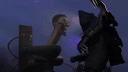 Двое Скибиди Туалетов пытаются сбежать, но в них внезапно влетает белый унитаз гигантских размеров, что был брошен в них Титаном ТВ Меном. Титан слышит голос Скибиди Туалета. Со стороны выходит Октавиус Скибиди Туалет, который, произнося "Skibidi", идёт на Титана ТВ Мена. Титан ТВ Мен замахивается кулаком и тяжёло бьёт по врагу, разбивая тому очки и отбрасывая голову. Октавиус готовится нанести удар, но Титан ТВ Мен включает красное излучение, что взрывает противника, убивая. Внезапно его атакует ракета, однако урон по нему не проходит. Титан ТВ Мен поворачивается и видит Гигантского Ракетчика Скибиди Туалета и во главе с ним два Ракетных Вертолёта Скибиди Туалета. Враг стреляет новой ракетой, но и тут Титан ТВ Мен не получает особого урона. К нему из-за спины прилетают три колонки, одна из которых сбрасывает винт и крепится на грудь, а другие пристыковываются к плечам. Нагнувшись, Титан ТВ Мен включает красный режим излучения и вместе с этим колонки, которые звуковыми волнами разбивают очки врагов. Противники убиты. Титан ТВ Мен оборачивается и видит вдалеке Заражённого Титана Спикермена, во главе которого вылетают и группы Скибиди Туалетов. Титан ТВ Мен показывает злую эмоцию >:(.