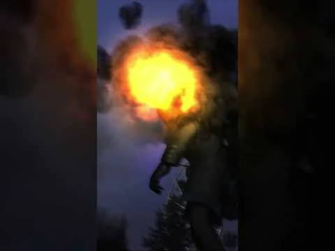 В руку Титана ТВ Мена влетает массивный ракетный снаряд, взрываясь о неё, однако Титану же атака ни по чём. Титан ТВ Мен, наклонившись, поворачивается к противникам. Гигантский Ракетчик Скибиди Туалет и двое Вертолёта Скибиди Туалета в балаклаве, вооружённые защитными очками, угрожают Титану ТВ Мену ракетным расстрелом. Выдвинув одну ракетную установку вперёд, Гигантский Ракетчик запускает новый ракетный снаряд, но и на это Титан ТВ Мен не реагирует. К Титану ТВ Мену из-за спины подлетают три колонки, три из них спокойно пристыковываются к плечам и крепятся, а центральная, подлетев к Титану ТВ Мену с верха, открепляет винт и падает вниз, вовремя пристыковываясь к груди титана и закрывая ядро. Титан ТВ Мен приподнимает руки, опускает, ставит левую ногу назад, наклоняет спину и включает звуковые волны и красное излучение одновременно. Звуковые волны разбивают противникам очки, а красное излучение впоследствии гипнотизируют Скибиди Туалетов поддаться воздействию. Гигантский Ракетчик Скибиди Туалет от боли орёт и пытается умереть, как вдруг это делают два вертолёта Скибиди Туалета, падая на него. Происходит взрыв, убивающий сразу трёх антагонистов.